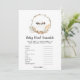 Baby shower word scrambles est un jeu de baby shower amusant qui fera courir vos invités pour voir qui peut débrouiller le bébé et les mots liés à la grossesse d'abord. Les réponses à celles sur cette carte sont : Blanket Bottle Birthing Room Doll Rocking Chair Burp Formula High chair Layette BreastAllaitement Ajoutez votre libellé personnalisé à cette conception en utilisant les cases "Modifier ce modèle design" sur le côté droit de l'article, ou cliquez sur le bouton bleu "Customiser" pour arranger le texte, modifier les polices et les couleurs et ajouter des informations ou des images supplémentaires à cette conception. Cliquez sur "Customiser plus loin" pour ouvrir les options d'édition complètes. Si vous avez besoin d'éléments de coordination (cartes de remerciements, etc.), veuillez me contacter pour une commande personnalisée. ****Pour les demandes personnalisées avec lesquelles vous avez besoin de mon aide, ne placez pas cette marchandise dans votre panier. Au lieu de cela, envoyez-moi votre demande par courriel à lauraliseprovencher@gmail.com Un lien vers votre marchandise vous sera envoyé par courriel une fois que l'article sera disponible. Vous pouvez utiliser ce lien pour passer votre commande. Veuillez compter jusqu'à 48 heures.