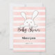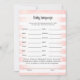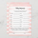 Profitez de jouer à ce jeu de baby shower Baby Language sur douce, rose et blanc arrière - plan de rayures d'aquarelle. Mignons lapin blanc, lapin lapin sur le dos avec des modèles créés pour vous.