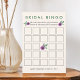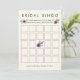 Le jeu de bingo classique pour enterrement de vie de jeune fille sur une jolie carte présentant une fleur de pensée violet en aquarelle et des accents botaniques verts. Se coordonne avec notre collection Pansy Violet d'invitations et d'accessoires pour enterrement de vie de jeune fille.