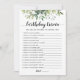 Carte de jeu modifiable pour l'anniversaire Trivia