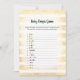 Profitez de jouer à ce jeu de baby shower Baby Emoji Pictures sur arrière - plan doux, jaune et blanc de bandes d'aquarelle. Mignons lapin blanc, lapin lapin sur le dos avec des modèles créés pour vous.