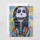 Ce squelette joyeux et souriant du Jour des Morts est issu de mon dessin original au crayon de couleur. Ce squelette est habillé pour sa célébration du Jour des Morts dans une écharpe aux couleurs vives orange et bleue et tient des fleurs blanches. Le fond a une apparence aquarelle avec des jaunes, des roses et des bleus. Voir ma boutique Art by MAR pour plus de produits avec cette image.