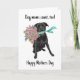 Cette carte mère jour présente un portrait aquarelle d'un laboratoire noir tenant un bouquet coloré de fleurs avec la légende "les mamans chien comptent aussi !".