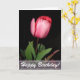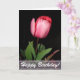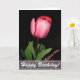 Beaux fleur et feuille rosâtres de tulipe sur cette carte de joyeux anniversaire.