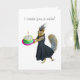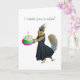 Un écureuil en robe noire élégante tient un gâteau d'anniversaire avec une seule bougie allumée.
