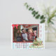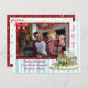 Photo de famille personnalisée Maison en pain d'épices avec rayures bleues et blanches et joli arc rouge Cartes de poste de Noël