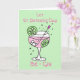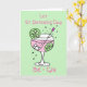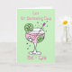 Jolie illustration de gin rose dans un verre avec bulle, glaçons, tranches de citron vert et une baguette mélangeuse dans des couleurs pastel délicates. Personnalisez facilement cette carte en modifiant le texte du modèle. Les messages disent actuellement "Que la Saint-Patrick be-gin" et à l'intérieur "Joyeuse Saint-Patrick". Merci d'avoir consulté mes créations !