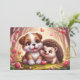 Carte de la Saint-Valentin adorable - Illuminez la journée de quelqu'un avec cette carte irrésistiblement mignonne représentant un hérisson joyeux et un adorable chiot sur un fond doux avec des cœurs et des roses, ce design respire le charme et l'amour. Parfait pour les amoureux des animaux, les amis ou cette personne spéciale, c'est une façon délicieuse de dire "Je me soucie de vous."