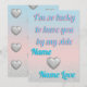 Cette carte de vœux élégante pour la Saint-Valentin présente un fond dégradé rose pastel et bleu, rehaussé de cœurs en glitter argenté de style 3D scintillant. Conçue pour les couples modernes, la face avant affiche un message romantique "Je suis si chanceux de t'avoir" dans une typographie élégante. Cette papeterie personnalisable vous permet d'ajouter les noms du destinataire et de l'expéditeur, ce qui en fait un objet de souvenir unique. Le verso contient un motif assorti de cœurs métalliques flottants sur un fond esthétique scintillant. Parfait pour les petits amis, les petites amies ou les conjoints qui apprécient une esthétique "clean girl" ou "soft boy" contemporaine. Finition d'impression à la demande de haute qualité garantissant des couleurs vives et des détails nets. Idéal pour ceux qui recherchent une papeterie romant