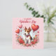 Carte de la Saint-Valentin avec un Fox Terrier entouré de fleurs et de ballons en forme de cœur.