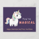 Une carte de la Saint-Valentin douce et ludique présentant une adorable licorne pastel et le message « Tu es magique ». Parfaite pour les enfants, les filles, les amis, les camarades de classe ou toute personne qui aime les licornes mignonnes et les jeux de mots légers.