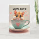 Cette image présente un hamster irrésistiblement mignon et duveteux qui regarde hors d'une tasse à thé vert clair, qui a un cœur rose sur le côté. Le hamster a de grands yeux sombres brillants, des joues roses et des pattes roses minuscules, avec une expression heureuse et curieuse. De petits cœurs roses flottent autour de la tasse à thé sur un fond rose clair doux, renforçant le thème doux et adorable.