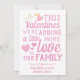 Une carte personnalisée de grossesse faire-part Saint-Valentin avec un genre révèle de surprendre votre famille et vos amis et leur faire savoir quand votre bébé est dû. Design dans les couleurs rose et blanc avec les coeurs.