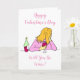 Illustration d'une femme buvant du vin. Personnalisez facilement cette carte en modifiant le texte du modèle. Les messages disent actuellement « Vas-tu être le vin ? » et à l'intérieur « Joyuse Saint-Valentin ». Merci de regarder mes créations !