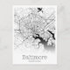 Carte graphique moderne carte postale montre les contours de la disposition de la ville de Baltimore MD avec les rues principales, les autoroutes et les plans d'eau.