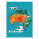 affiche Australie Carte Voyage. Affiche australienne de vacances de dessin animé.