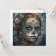 Célébrez le "Jour des Morts" avec cette carte d'art raffiné à couper le souffle représentant une femme avec un maquillage de crâne calavera turquoise et or complexe. L'œuvre d'art est un cours magistral de détails, mêlant les motifs traditionnels mexicains de crâne en sucre avec des textures éthérées et enfumées et des ornements de rose élégants dans ses cheveux. Avec ses tons bleus profonds et lunaires et son expression perçante, ce design est un moyen puissant et beau d'honorer les ancêtres ou d'envoyer un salut saisissant pour une célébration de Dia de los Muertos.