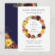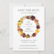 Cette carte chic de mariage à conserver présente une magnifique couronne florale aquarelle jaune, orange brûlé et bordeaux. Conçue pour correspondre à notre collection de mariage Automne Romance. Personnalisez-la facilement et rapidement avec vos informations, il suffit d'appuyer sur le bouton Personnaliser pour réorganiser et formater davantage le style et l'emplacement du texte. (c) The Happy Cat Studio