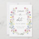 Annoncez votre jour spécial avec style avec cette carte "Save the Date" à l'aquarelle représentant des fleurs sauvages, avec une couronne florale peinte à la main de fleurs roses, violettes, jaunes et bleues. L'élégante écriture moderne met en valeur la date de votre mariage, tandis que les accents botaniques doux créent un look romantique et rustique. Parfait pour les mariages bohèmes, de jardin, ou de printemps et d'été, ce design se coordonne parfaitement avec la suite de mariage complète de fleurs sauvages, y compris les invitations, les cartes de réponse, les cartes de détails et les notes de remerciement. Personnalisez avec vos noms, date de mariage et lieu pour un souvenir intemporel que vos invités adoreront.
