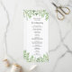 Cartes de programme de mariage sur le thème de la nature avec des feuilles d'aquarelle verte élégantes. Parfait pour les mariages de verdure printanière et les événements de jardin botanique moderne.