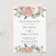 Cette carte de mariage chic Save the Date présente une belle composition florale aquarelle rose et ivoire. Conçue pour correspondre à notre collection de mariage Romance Blooms. Personnalisez-la facilement et rapidement avec vos informations, il suffit d'appuyer sur le bouton de personnalisation pour réorganiser et formater le style et l'emplacement du texte. (c) The Happy Cat Studio