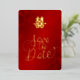 Cette carte Save the Date présente un symbole artistique de double bonheur en or et un script calligraphique sur un fond floral rouge scintillant.