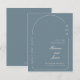 Célébrez votre jour spécial avec élégance et style en utilisant cette carte de mariage moderne "Save the Date" avec un design à arche minimaliste et une typographie raffinée. Ce design est parfait pour les couples qui recherchent une esthétique contemporaine élégante avec des détails doux et une tonalité bleue apaisante. Entièrement personnalisable avec vos noms, date et lieu de mariage. Imprimée sur du papier cartonné de haute qualité, cette invitation donne le ton parfait pour votre grand jour.