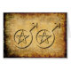 Il y a un thème de cowboy à cette carte de mariage masculine gaie de Wiccan. L'arrière - plan de parchemin le donne qui antiquité occidentale sauvage. Les événements principaux sont cependant les symboles masculins associés ensemble à l'union, chacune avec un pentagramme de Wiccan à leur noyau.