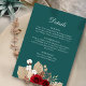 Présentant notre superbe carte de détails Mariage Turquoise de Bourgogne, un ajout élégant à votre papeterie mariage qui combine magnifiquement la profondeur du turquoise avec l'allure intemporelle des roses bordeaux. Elevez vos préparations mariages avec ce morceau méticuleusement travaillé, conçu pour encapsuler l'essence de votre journée spéciale. Cette fiche de détails ne transporte pas seulement des informations importantes, mais ajoute également une touche de raffinement à votre présentation globale. Découvrez l'opulence du turquoise, le charme intemporel des roses bordeaux, et l'élégance du design méticuleux avec notre Turquoise carte de Mariage Rose de Bourgogne. Laissez chaque carte guider vos invités à travers le voyage magique qui est votre jour de mariage.
