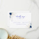 Élevez votre mariage avec notre carte RSVP de mariage Horizon bleu moderne. Ornée d'élégantes calligraphies en bleu d'horizon, cette carte présente un design moderne qui complète votre thème mariage blanc et bleu. Son mélange raffiné de bleu marine et de bleu roi, accentué par de délicats fleurs sauvages, offre une touche sophistiquée qui correspond parfaitement à l'élégance de votre journée spéciale.
