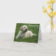 Carte de voeux pour marionnettes de Labrador jaune avec vers à l'intérieur