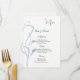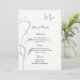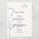 Ce modèle de carte de menu est présenté sur du papier de base blanc avec un beau motif de vigne imprimé de couleur ardoise bleue.