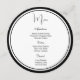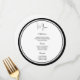 La carte de menu est affichée dans le papier mat de base blanc dans la forme cercle avec script et texte standard en noir. La couleur de bordure est Noir Personnaliser les éléments du menu à votre place en cliquant sur le bouton de modification de la personnaliser, regardez à droite et trouvez les cases appropriées pour modifier vos informations. Je vous souhaite de bons voeux pour votre jour de mariage.