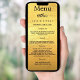Carte menu fête d'anniversaire pour lui et elle. Personnalisez et ajoutez un nom, un âge, une date et le menu. Un arrière - plan à l'allure d'or. Lettres de couleur noire. Retour : ajouter une photo du gars de l'anniversaire, faits amusants