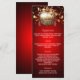 Carte de menu de dîner de fête de Noël. Personnalisez et ajoutez un nom/événement, date et le menu. Un fond rouge, texte blanc. Décoré d'une boule dorée. Texte : Joyeux Noël