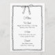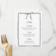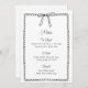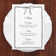 Ajoutez une touche de charme à votre événement avec cette carte de menu à nœud. Caractérisée par une illustration de nœud dessinée à la main et un cadre à bord festonné pour une atmosphère élégante et ludique. Idéal pour les mariages, les soirées de fiançailles ou les fêtes avec une ambiance chic et minimaliste. Texte personnalisable pour une coordination facile avec votre thème. Parfait avec une décoration monochrome ou à l'inspiration française.