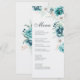 Carte de Menu de Mariage Botanique Sarcelle