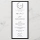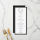 Élégante carte de menu plat de mariage noir et blanc à monogramme couronne botanique.