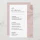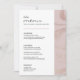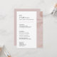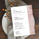 Carte de menu de table de mariage poussiéreux rose
