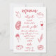 Partagez votre menu de dîner d'occasion avec ce magnifique design d'inspiration italienne avec des lettres de style manuscrit cursif accentué avec des illustrations de nourriture dessinée à la main en rouge tomate. Les illustrations comprennent les pâtes de penne, le vin, le citron sicilien, les tomates, la bruschetta, les spaghettis à la fourchette, le gâteau et le café. Customisez le titre du menu et jusqu'à trois plats.