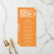 Cette carte de menu en cachemire indien orange est parfaite pour un mariage moderne. Le design mehndi présente un joli mandala au henné floral et un motif paisley sur un arrière - plan orange brûlé. Ce menu peut être utilisé pour une réception de mariage, un dîner de répétition ou tout événement. Associez ce design aux pièces de coordination en violet, turquoise, rose et orange de la collection Mariage Colorful Indian Paisley : https://www.zazzle.com/collections/119662428781277925.