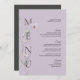Carte de menu du Mariage violet botanique 5x7"