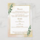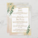 Élevez votre réception de mariage avec cette carte de menu luxueuse. Faisant partie de notre élégante collection verte et or, ce design présente une parties scintillant dorée scintillante, des textures d'aquarelle douce et une végétation réaliste d'eucalyptus. C’est la façon idéale de présenter vos choix culinaires avec style et raffinement. Customisez ce menu pour afficher vos options de nourriture et de boisson pour une expérience client vraiment personnalisée.