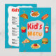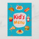 Cette carte de menu enfant est amusante, colorée et super facile à lire ! Parfait pour garder les petits convives heureux avec des options de repas savoureuses dans votre restaurant.