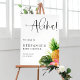 Carte de menu citron mariage. Il présente des illustrations d'aquarelle de feuilles de palmiers, de feuilles de bananes, d'hibiscus, de plumeria et d'autres plantes tropicaux. Cette carte à la carte tropicale est parfaite pour les mariages d'été, les baby showers, les douches nuptiales, les anniversaires, et bien plus encore.