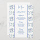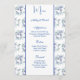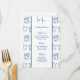 Cette carte de menu mariage est affichée sur du papier de base dans une belle impression florale bleue. Script et texte standard dans une couleur bleue. Customisez en cliquant sur le bouton personnaliser, cherchez à droite et trouvez les cases appropriées pour modifier vos informations. stock image freepik.com