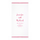 La carte de menu simple mariage pour mariage est joliment conçue avec une touche de style vintage. La carte présente un arc gribouillé griffé et la typographie dessinée à la main en magenta et blanc. Il y a aussi deux bordures en haut et en bas et un motif rayé rose et blanc.