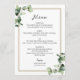 Carte de menu mariage élégante cadre or verdure
