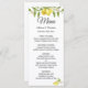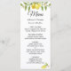 Carte de menu Mariage Fleur de citrons frais