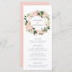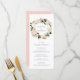 Elégante carte de menu de mariage personnalisée avec vos noms encerclés par une couronne d'hydrangées roses rousses et de fleurs blanches avec feuille d'or faux rose et feuilles verts. Personnalisez les menus personnalisés de mariage en ajoutant les détails de votre menu mariage ci-dessous. Le menu revient à un arrière - plan rose vif avec espace pour le texte et les photos. Conçu pour coordonner avec notre collection de mariages floraux de Flush Spring.